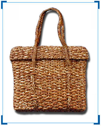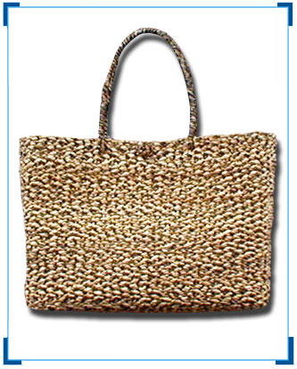 Picnic bag with brown natural abacca stalks twisted weave and continous